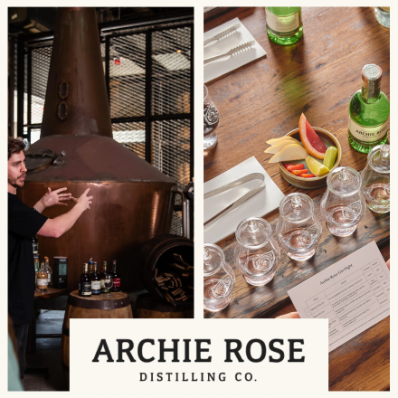 What it includes: Voucher for Distillery Tour & Tasting for Two. Join us at the Archie Rose Bar & Cellar Door and learn first hand how we produce our gins, whiskies and vodka followed by a guided tasting of our core spirits range.