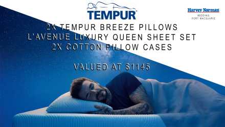 2 x Tempur Pillows retail at $398 each and a L'Avenue Luxury Queen Sheet Set retails at $349