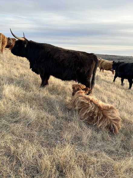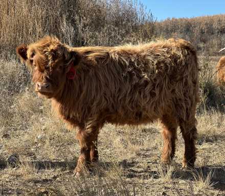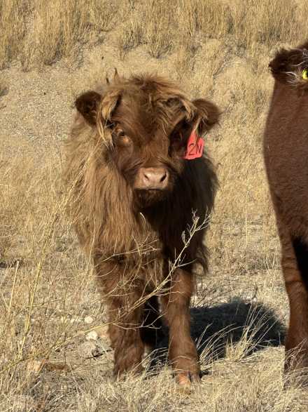 Nyx carries herself with lift and alertness, fine-boned yet strong-backed—a heifer that catches the eye by posture more than size. Her dam Helah brings length, a good hindquarter, and the will to keep going through difficulty. Gordon steadies the frame and adds depth, giving muscle where Helah runs light. Together they balance reach with resilience. Nyx should round out through the middle while keeping her clean lines—a composed, resilient cow built for long seasons and steady work.