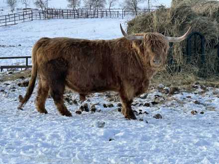 Naramay stands compact and full, already settling into her strength. She’s pretty-faced and wide through the middle, with the small dewlap and clean front that make her dam Jazlyn such a good beef cow. Gordon firms the topline and rounds the rib, smoothing the rise through the hip while keeping the build strong. She reads as a composed, useful heifer—heavy-set with a gentle manner, ready to raise thick, well-made calves and hold her condition through hard winters.