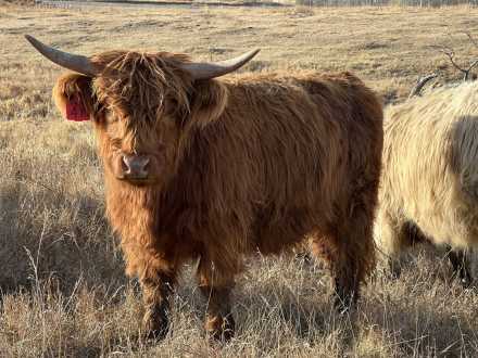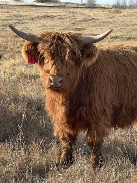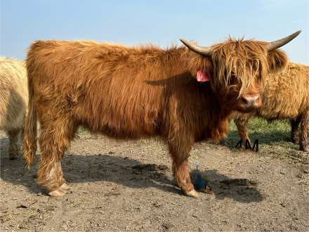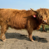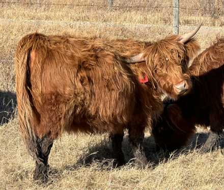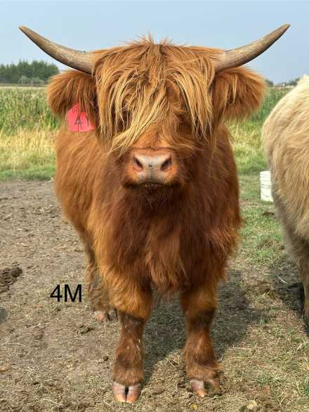 Minot shows balance and depth, carrying herself evenly through a moderate frame—broad in the chest, sound on her feet, and good through the pasterns. She moves with quiet assurance, often coming forward with her chin up eager for a scratch—a heifer that invites touch as easily as she settles to hand.
