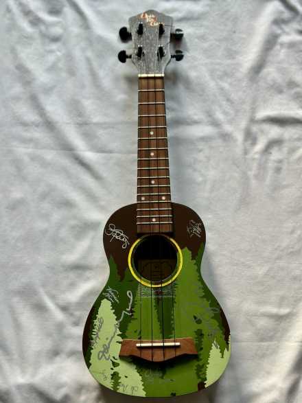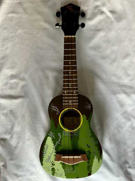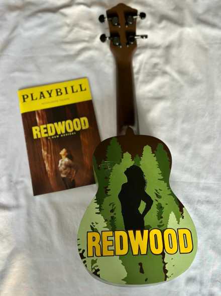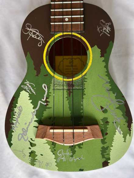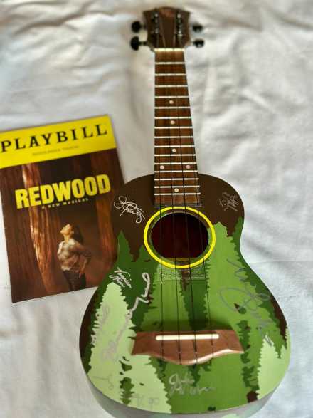 Signed by the OBC including the amazing Indina Menzel and Michael Park, De' Adre Aziza, Zachary Noa Piser & Khaila Wilcoxon! Inspired by the heart and humanity of the iconic new Broadway show Redwood, this hand-painted ukulele is a stunning tribute to nature, connection, and resilience. Featuring earthy tones and bold imagery, this one-of-a-kind instrument is a priceless treasure for fans of powerful storytelling and unforgettable performances.