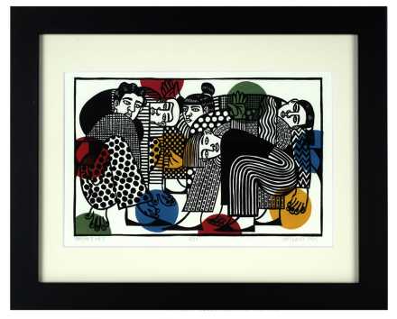 Linocut printed with oil-based ink on Rives BFK paper