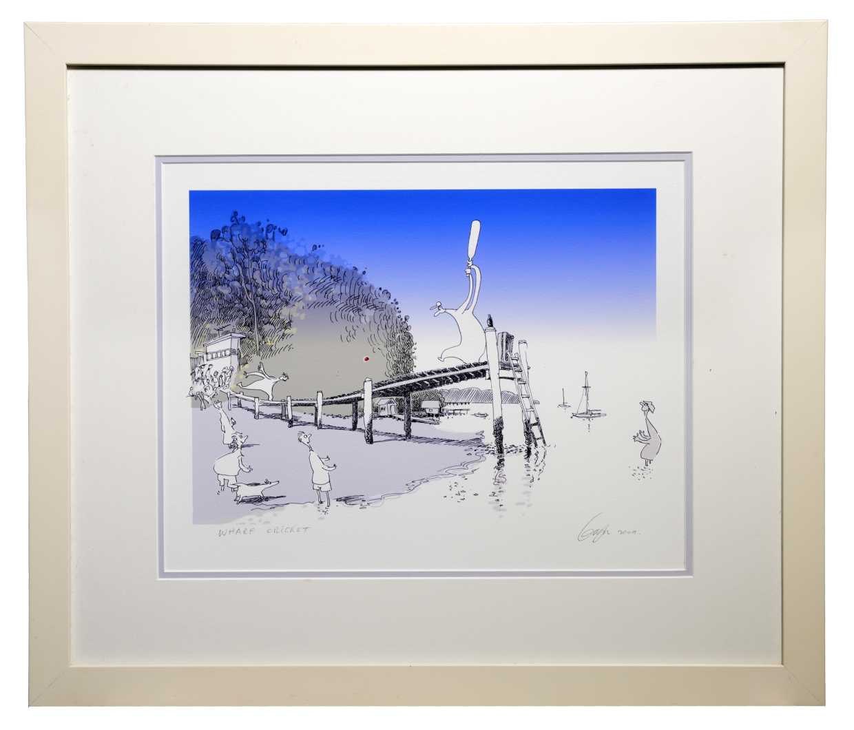 Depicting a cricket match played on a Frog Hollow wharf. Bob’s personal favourite Gwyn illustration.