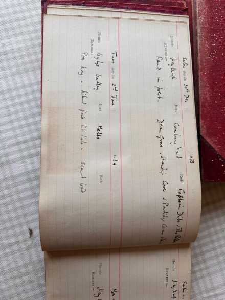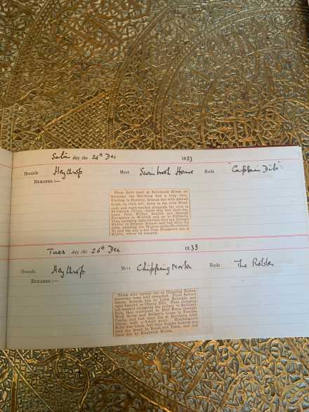 The fascinating Hunting Diaries of Arnie Butler, Grandfather of Rose from Lower Farm, Ramsden dating from 1891 and diaries from her father Robert Arnold Philip Butler, known as Johnny, dating from 1910.