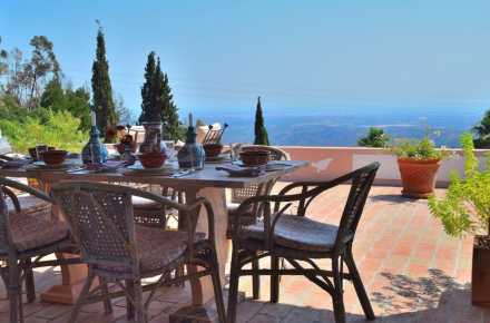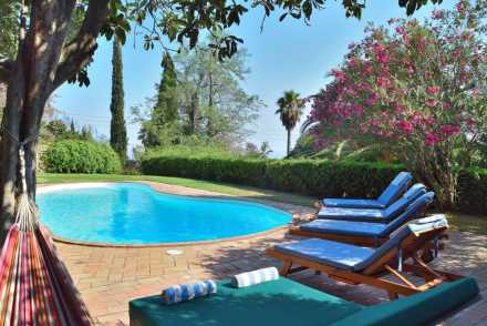Cabana dos Rouxinois (House of the Nightingales) is spacious and comfortable with a secluded pool and tennis court set in beautiful gardens, in the mountainous area of Monchique. 45 mins to the west coast surf beaches around Alzejur, or an easy drive to the golf courses of the Algarve.