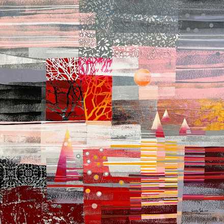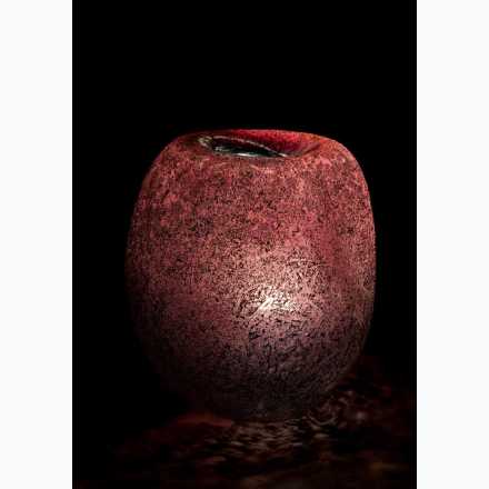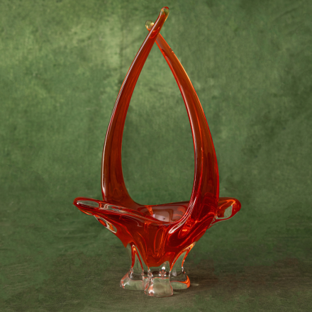 CHALET ART GLASS BASKET IN SCARLET RED AND CLEAR CLOVER. BY THE M