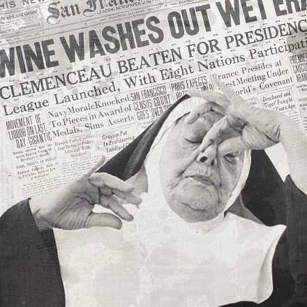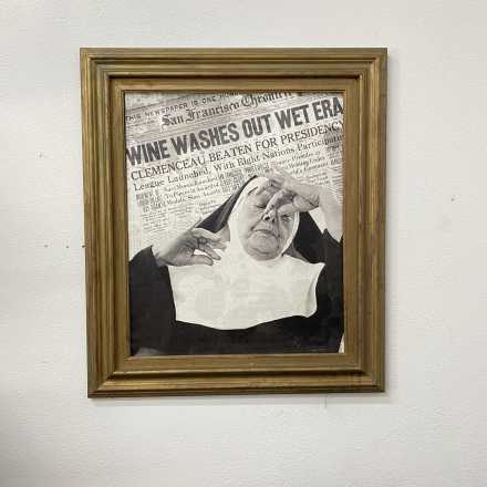 Gold Framed Nun Newspaper Artwork 31"H x 27"L