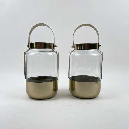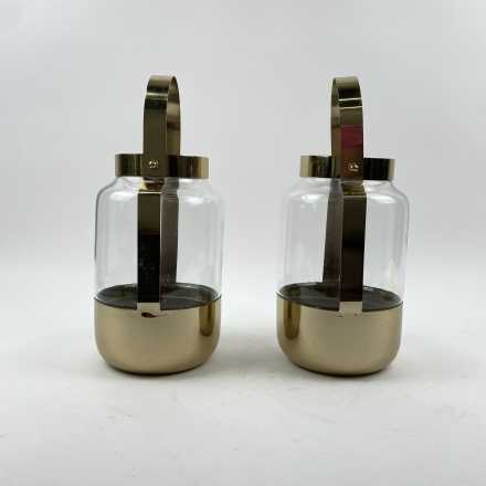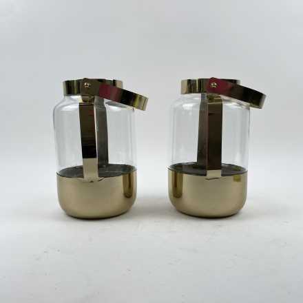 Lot of 2 Glass Lanterns w/Gold Detailing