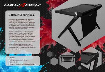 Designed for professionals, gamers, and creatives alike, the DXRacer desk isn’t just a piece of furniture—it’s an upgrade to your entire, gaming experience.