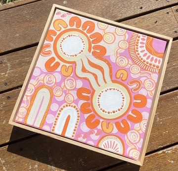 The flow of meeting places across the artwork symbolises the journey across Country with your people, while the surrounding meeting places represent the broader community.