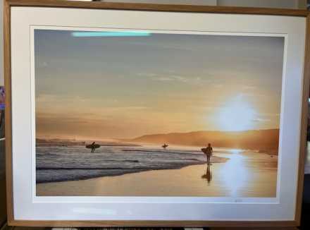 Framed Nish Artwork Surfers at Sunrise