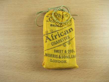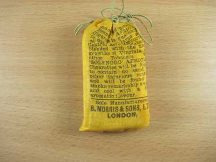 10 Solenodo African Cigarettes by B.Morris & Sons c.1909/1915 - In an unopened net pouch - condition.perfect - [G19]. This is like new and exceptionally rare with the tin foil wrapped cigarettes still in side.