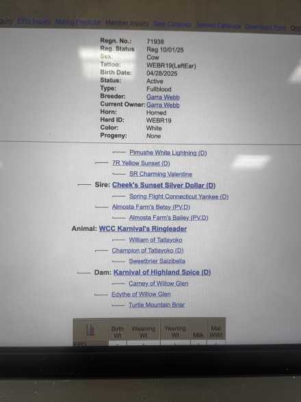 Ringleader is a striking white Highland heifer that exemplifies the elegance and structure of her proven lineage. Her dam, Karnival of Highland Spice, comes from the renowned Highland Spice program known for exceptional show-quality cattle. Karnival was selected for her compact size and well-balanced build, and Ringleader is following right in her footsteps.
