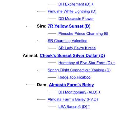 • Sire: Cheek’s Sunset Silver Dollar – 45” Silver AHCA Registered Highland Bull