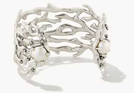 Inspired by ornate coral branches, this vintage-inspired metal cuff from Kendra Scott is elevated with crystal studs and freshwater cultured pearls.