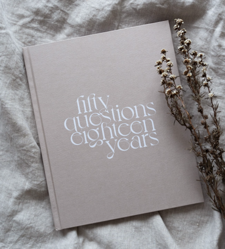 Capture the sweetest moments of your loved one's first 18 years with the Fifty Questions, Eighteen Years Keepsake Baby Journal. Our mindful interactive keepsake journal is perfect for reflecting on your journey as a parent and for keeping safe the memories of your little one's growth. Filled with 50 thoughtfully-curated questions and enough room for photos, notes, hand-written letters, drawings and scribbles this elegant journal will be a treasured memory of your child's first 18 years.
