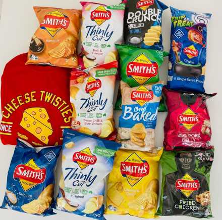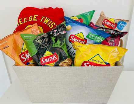 Smiths chips hamper. Includes 12x assorted Smiths chips plus men’s size Twisties jumper.