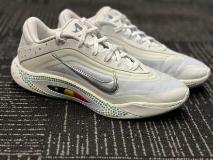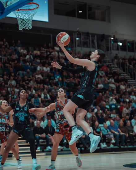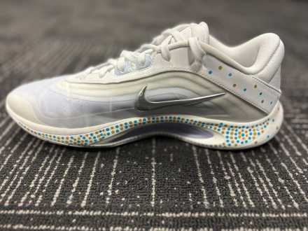 The shoes worn by Jade Melbourne during the 25th October 2025 WNBL Indigenous Round match up of the UC Capitals v Townsville Fire at AIS Arena in Canberra. These shoes feature custom artwork by Richard Allan, proud Ngunnawal man and the artist behind the UC Capitals' last 3 Indigenous round uniforms.