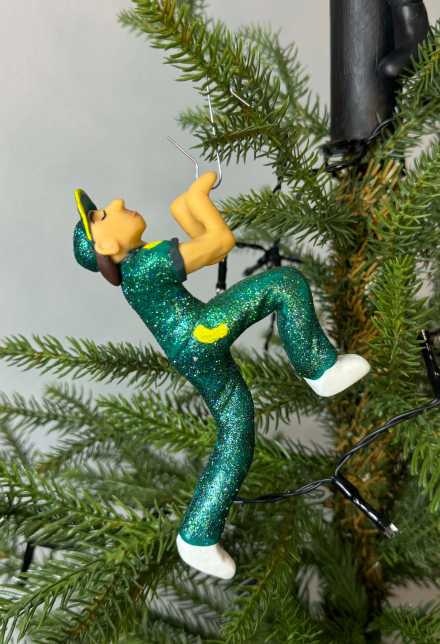 Shipping is free. This is a cursed-mas ornament inspired by Raygun, as seen in my unhinged Xmas ornaments series.