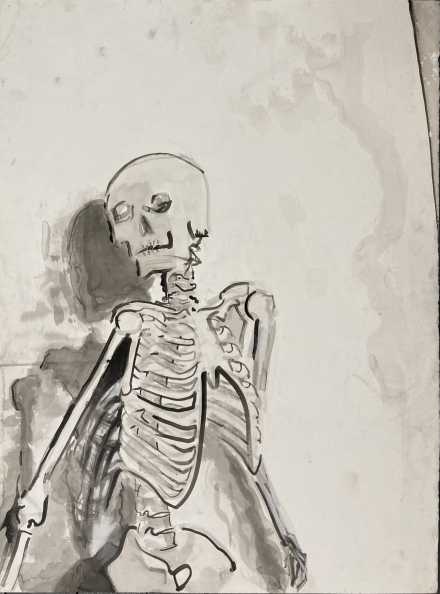 I have left this work untitled, as I do not want viewers to be influenced before deciding on the expression on the skeleton’s face. To me, the expression and posture always reminds me of the poetry and teachings of my favourite Japanese Zen Master, Ikkyu (1394-1481). Ikkyu called himself “Crazy Cloud” (which coincidentally was a name I came up with for myself during a Bipolar episode in my 20s- before learning about Ikkyu!). One of my favourite lines, is: “If at the end of our journey there is no final resting place, then we need not fear losing our Way”.