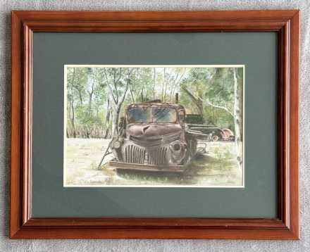This pastel artwork depicts an abandoned ute resting quietly in the bush. It’s rusted frame blending into the landscape as nature slowly takes it back. The earthy colours and soft line work give it a nostalgic, almost peaceful mood, as if telling a story of time passing and things left behind.
