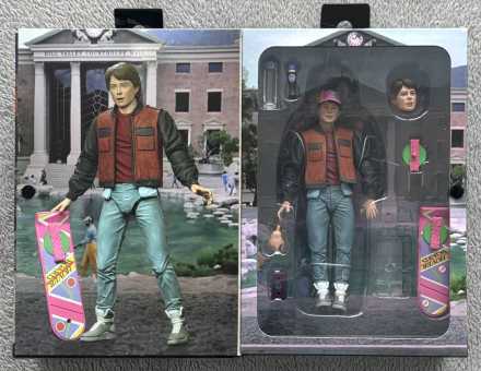 Highly articulated Marty McFly wearing the auto-adjusting jacket and self-lacing sneakers. Comes with interchangeable head, hoverboard, and future soda accessories. The National Entertainment Collectibles Association (NECA) works with talented artists to create collectible action figures, prop replicas, and more.