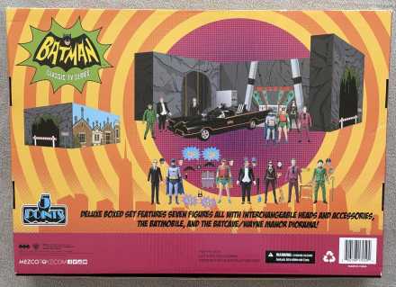 Each figure in the series has been designed in Mezco's unique 5-Points style, which blends modern articulation with the look of yesteryear for detailed action figures with a retro twist, including Batman, Robin, Alfred, Catwoman, The Penguin, The Riddler, and The Joker.
