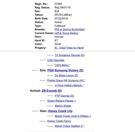 • Sire: ZR Everett is out of bloodlines that trace back to the original Scottish herd books, offering a rich foundation of Highland genetics that will elevate any herd.