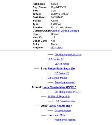 • Dam: Lori’s Nessie, an AHCA-registered impact dam, has proven her worth with consistent productivity. Calving her first by 3 years and 4 months and maintaining a calving interval of 380 days or less, she sets the gold standard for maternal success.