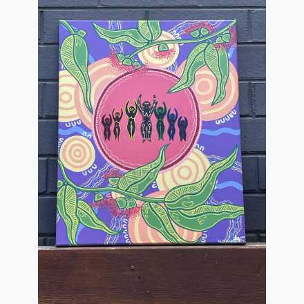 Gum leaves feature prominently, honouring the presence of gum trees throughout North East Victoria. They also represent cleansing and renewal, as gum leaves are traditionally used in smoking ceremonies to purify and protect.